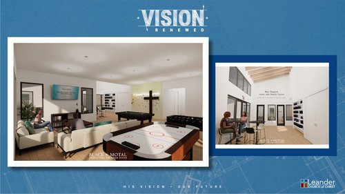 As part of our Vision Renewed campaign at Leander Church of Christ, Phase Two brings a meaningful transformation to our church campus: the demolition of the Brick House and the construction of the brand-new Whit Pennock Youth & Family Center. This project honors the legacy of Whit Pennock, who faithfully served the Leander Church of Christ for over four decades—as a youth volunteer, youth minister, elder, and family life minister. His impact has shaped generations, and we are proud to carry his name forward into a space designed to continue that mission.