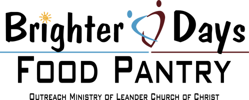 Leander Church of Christ maintains an incredible pantry called Brighter Days Food Pantry. We stock canned goods and general grocery items and occasionally we have personal care items. We try to maintain healthy food options. When available we have fresh products such as meats, dairy products, and fresh vegetables and fruits. We are partners with the Central Texas Food Bank, Keep Austin Fed, Costco, Randall's, and 365 Whole Foods. We are blessed to assist 240 families (or over 400 people) per week! We have one of the few evening pantries in the entire Austin area and it is open every Wednesday from 5:30PM - 7:00PM or until we meet our maximum of 240 vehicles. You are welcome to come as often as you need. For the safety and convenience of all, we operate with curbside pickup only—unfortunately, walk-ups are not permitted. If you do not have access to a vehicle, we encourage you to visit one of the nearby pantries that offer walk-in services.